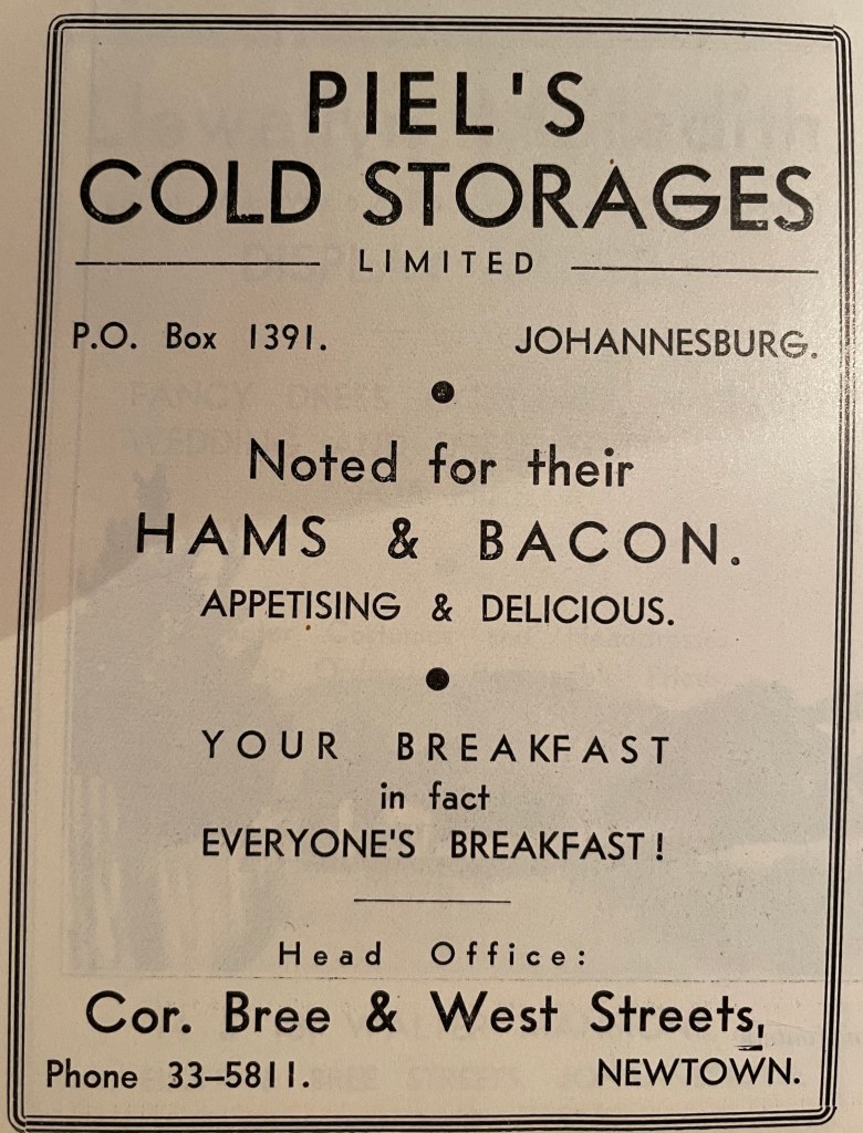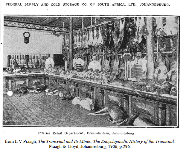 Imperial Cold Storage & Supply Co. was set up in 1902 by De Beers and after the war amalgamated with another cold storage company and was later absorbed by another with interests in several other companies, one being JHB Cold Storage mentioned above. It seems there were many amalgamations with smaller firms, but cold storage competition in Johannesburg came in the form of Federal Supply and Cold Storage, which was itself an amalgamation of butchers Piel & Anghern and other small businesses.