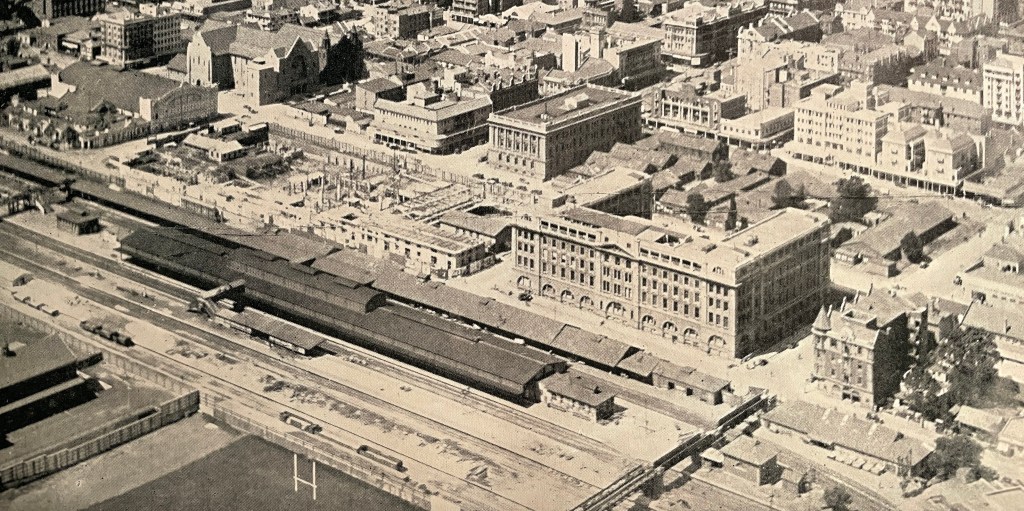 The area north of the old abattoir/apartments today houses the old Park Station structure. It’s important to point out that this was not its original position. It was originally where the modern Johannesburg Station and Gautrain Station are today.