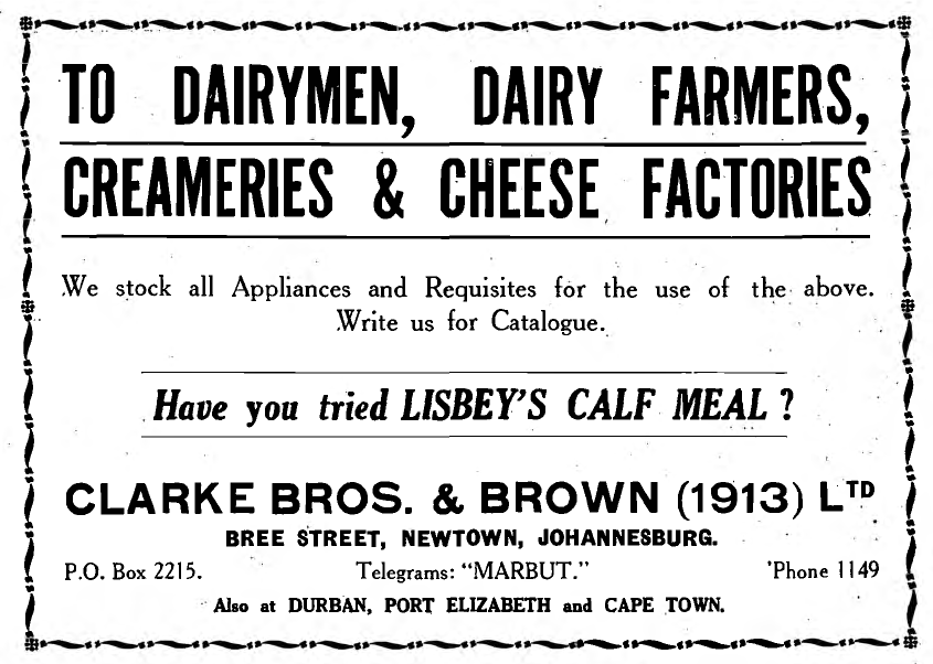 Entries in the Government Gazette show a special and extraordinary resolution in May 1921 which related to an increase of capital from 6 000 Pounds to 10 000 Pounds. The factory existed in 1927 as it was part of a tour by Potchefstroom farmers (Farming in South Africa – June 1927)