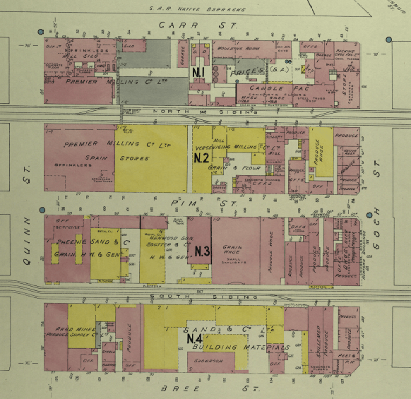 Imperial Cold Storage was one of the objectors of the 1902 Insanitary scheme. The stands are listed as 881/4, 912/23, 984/7a Brickfields. So too were JHB Cold Storage (a company formed in Aug 1899) with stands at 902/9, which appear to be one of the blocks that remained likely due to them not being declared insanitary. According to the report, many stands, mostly dwellings, around the cold storage buildings, were in poor condition and were earmarked for demolition.